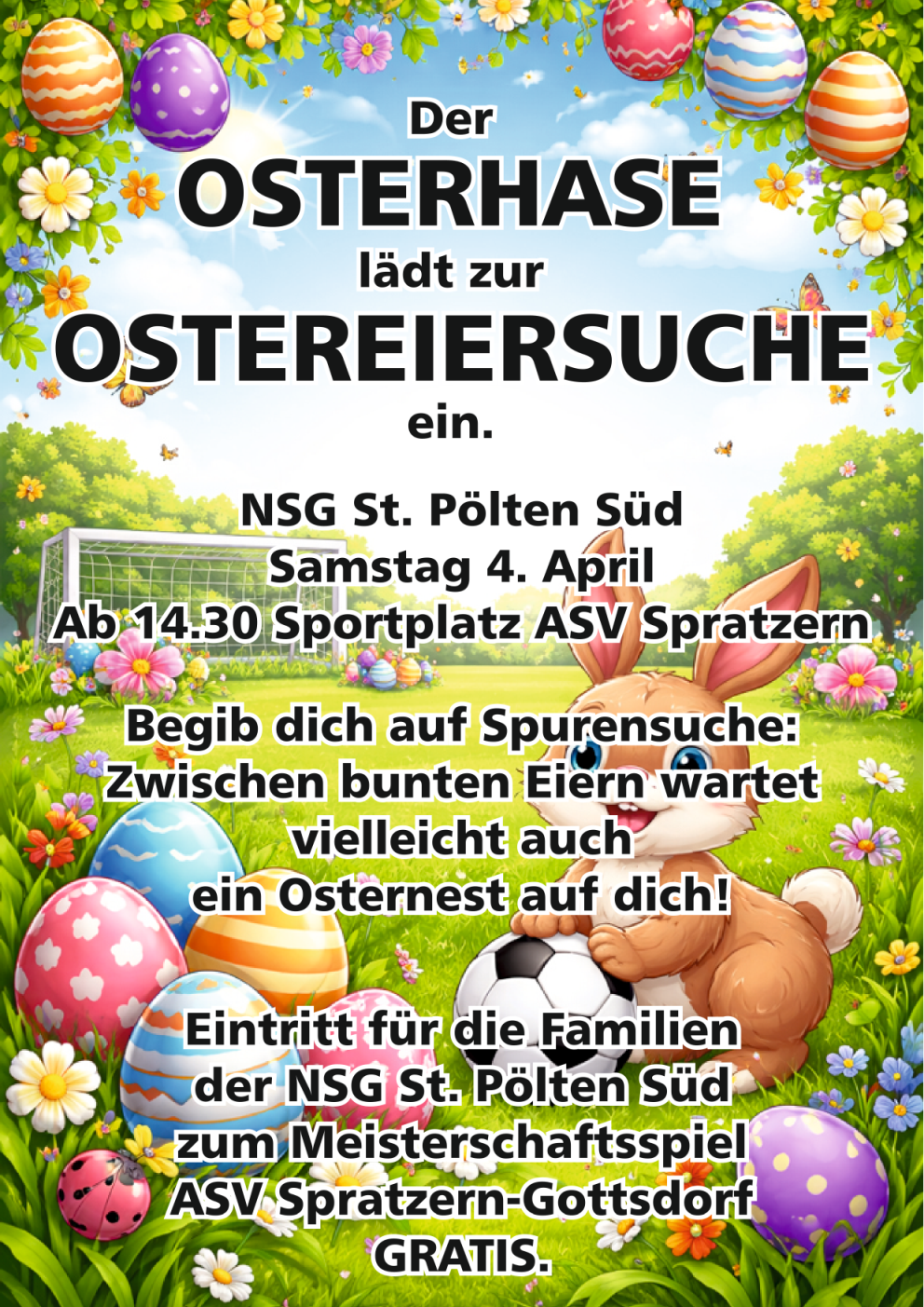 Wir laden alle Kinder am Samstag den 4 April ab 14:30h ein zum Ostereieresuchen